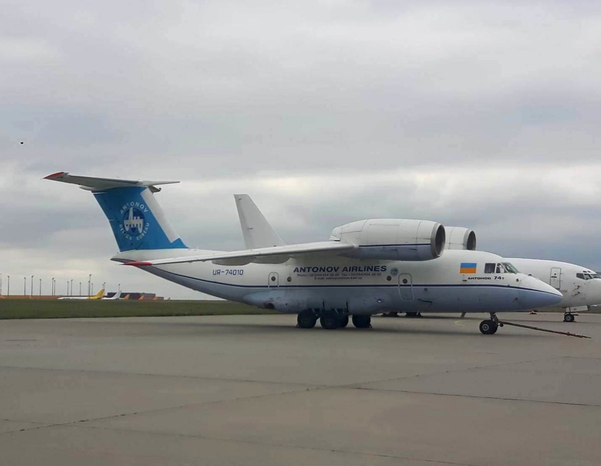 Antonow Airlines AN 74 UR-74010 auf dem Vorfeld in Leipzig (LEJ) am 1.4.2020