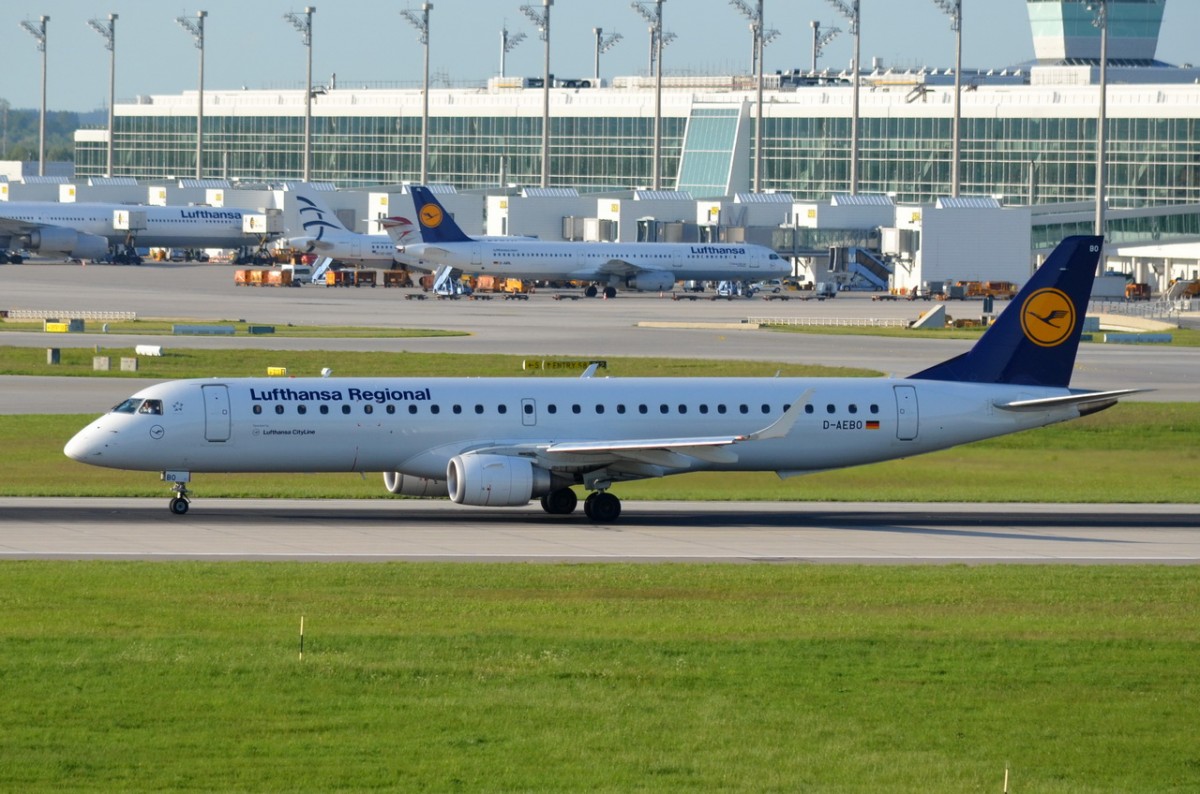 D-AEBO Lufthansa Cityline Embraer ERJ-195LR (ERJ-190-200 LR) beim Start in München am 10.05.2015
