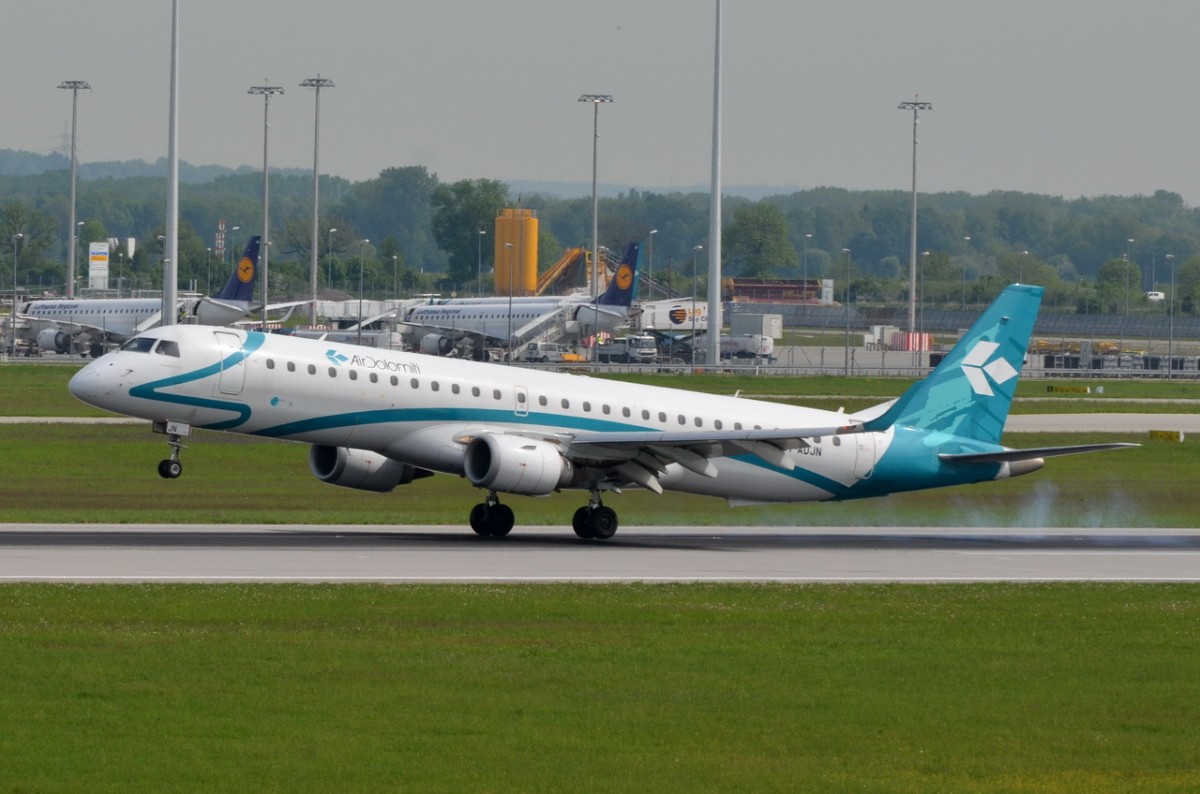 I-ADJN Air Dolomiti Embraer ERJ-195LR (ERJ-190-200 LR) bei der Landung in München 12.05.2015