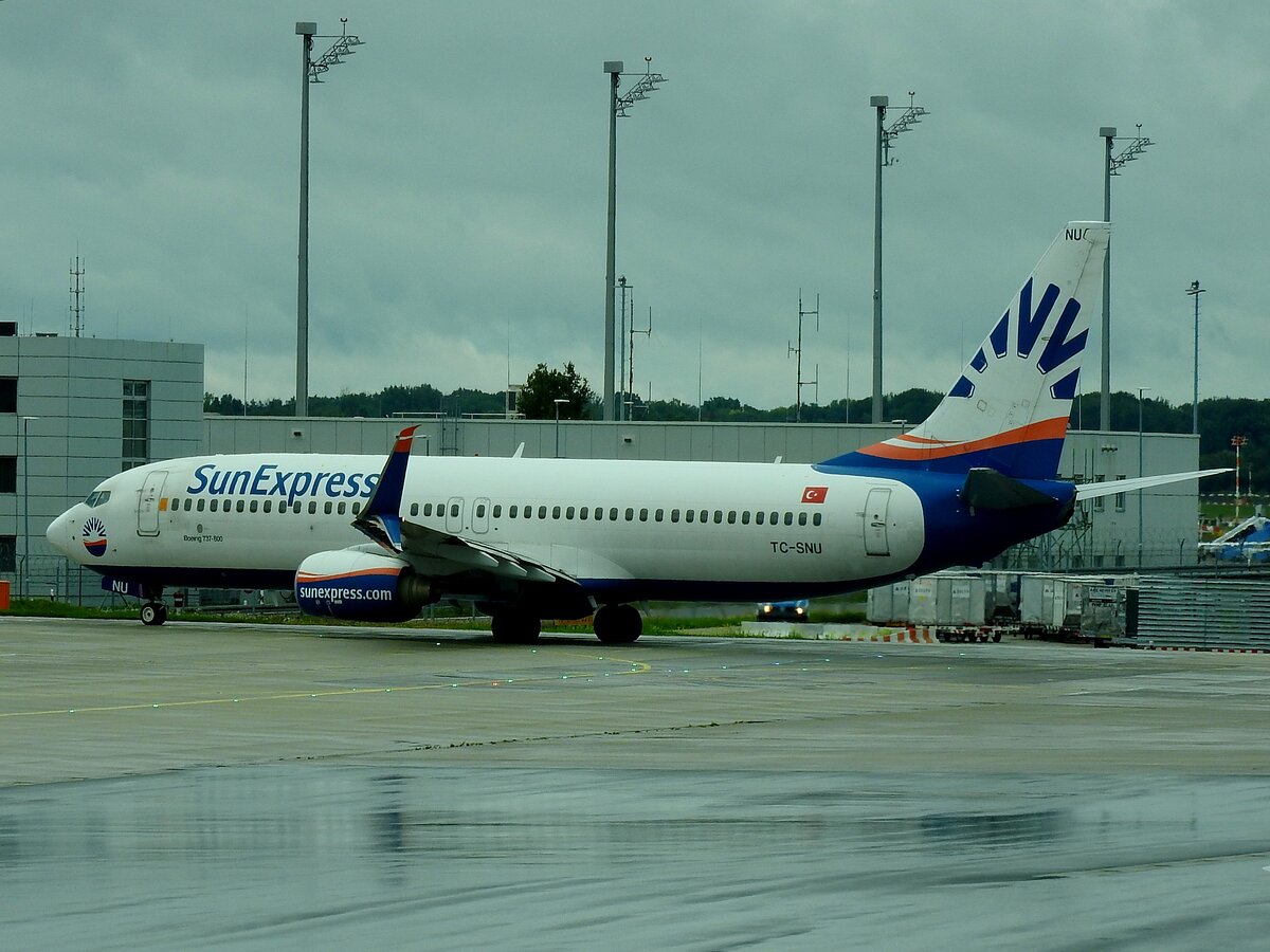 SunExpress (TC-SNU; Boeing 737-800) rollt gemächlich zur Startbahn im MUC; 250914