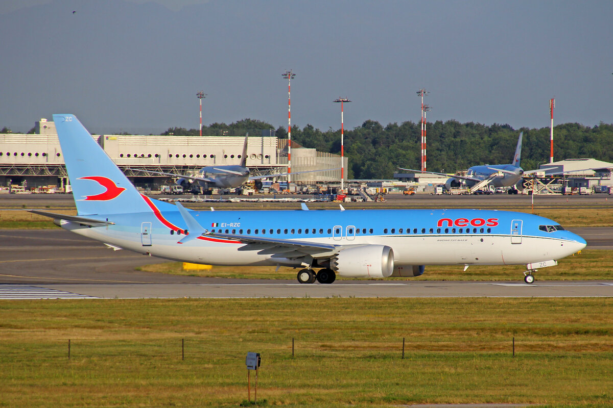 NEOS, EI-RZC, Boeing 737-8MAX, msn: 62872/7650,  Amerigo Vespucci , 02.Juli 2021, MXP Milano Malpensa, Italy.