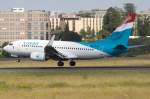 LX-LBR Boeing 737-7K2, wird in Kürze von einem Schropf Schlepper auf dem Flughafen von Luxemburg aufs Rollfeld geschoben. 16.06.2025