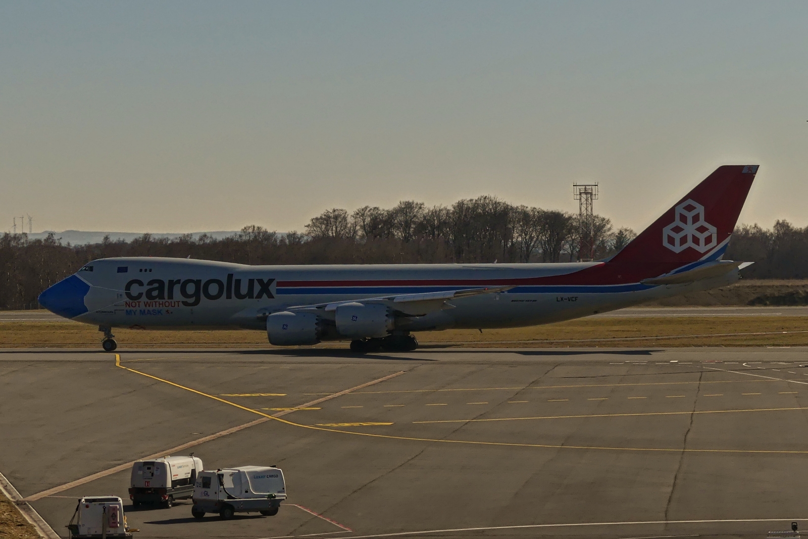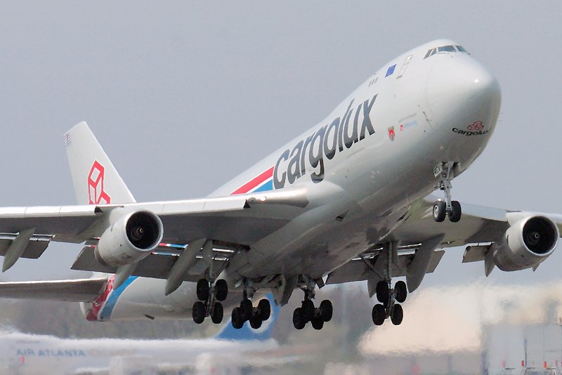 LX-RCV, B747-4R7F(SCD), Luxembourg ELLX/LUX, 27.04.08, Cargolux Jumbo takes off from Luxembourg on a sunny april morning (EOS40D + Sigma 50-500)