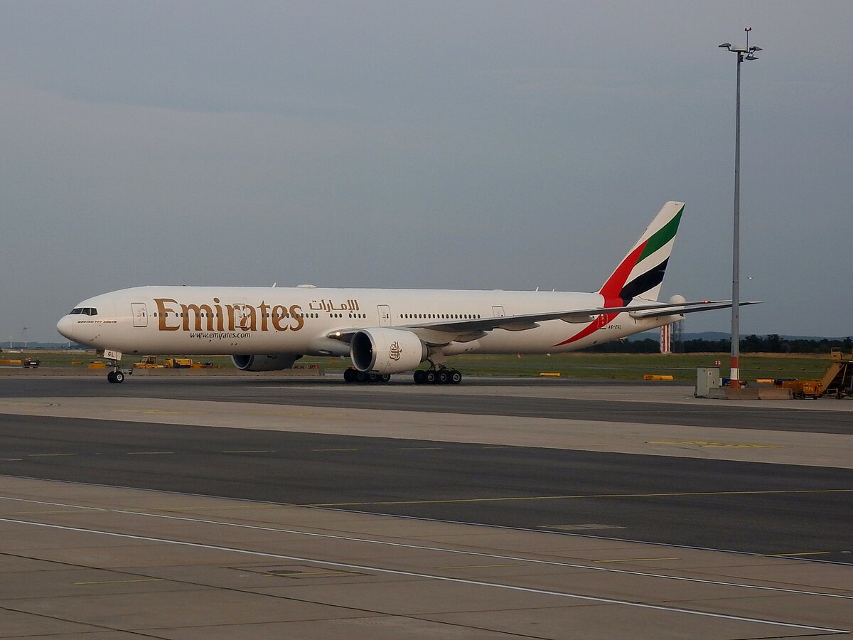 Boeing 777-31HER, Kennung A6-EGL von emirates, ist soeben am Flughafen WIEN-Schwechat(VIE-LOWW) gelandet; 230706
