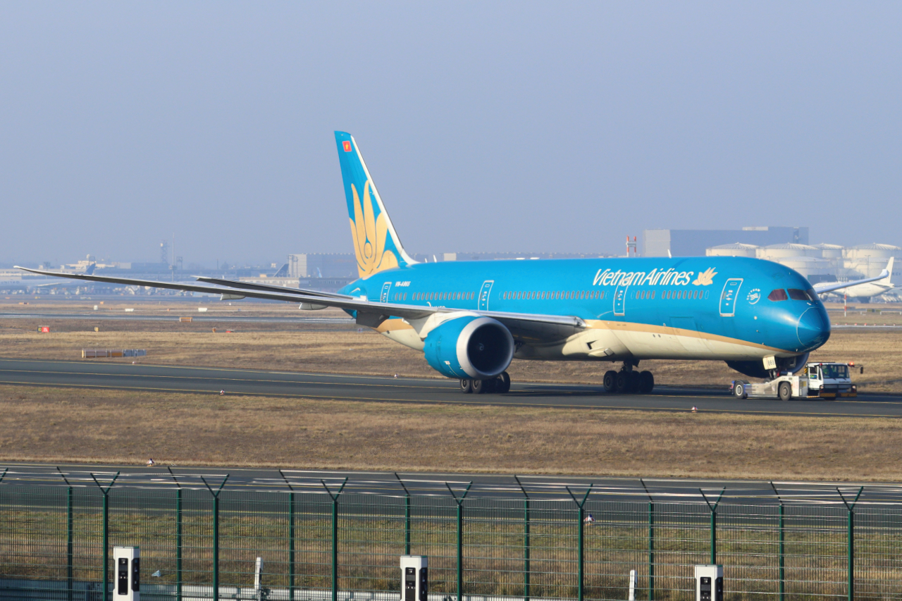 Vietnam Airlines Boeing 787-9 Dreamliner VN-A865 wird zum Gate geschleppt in Frankfurt 22.1.2026