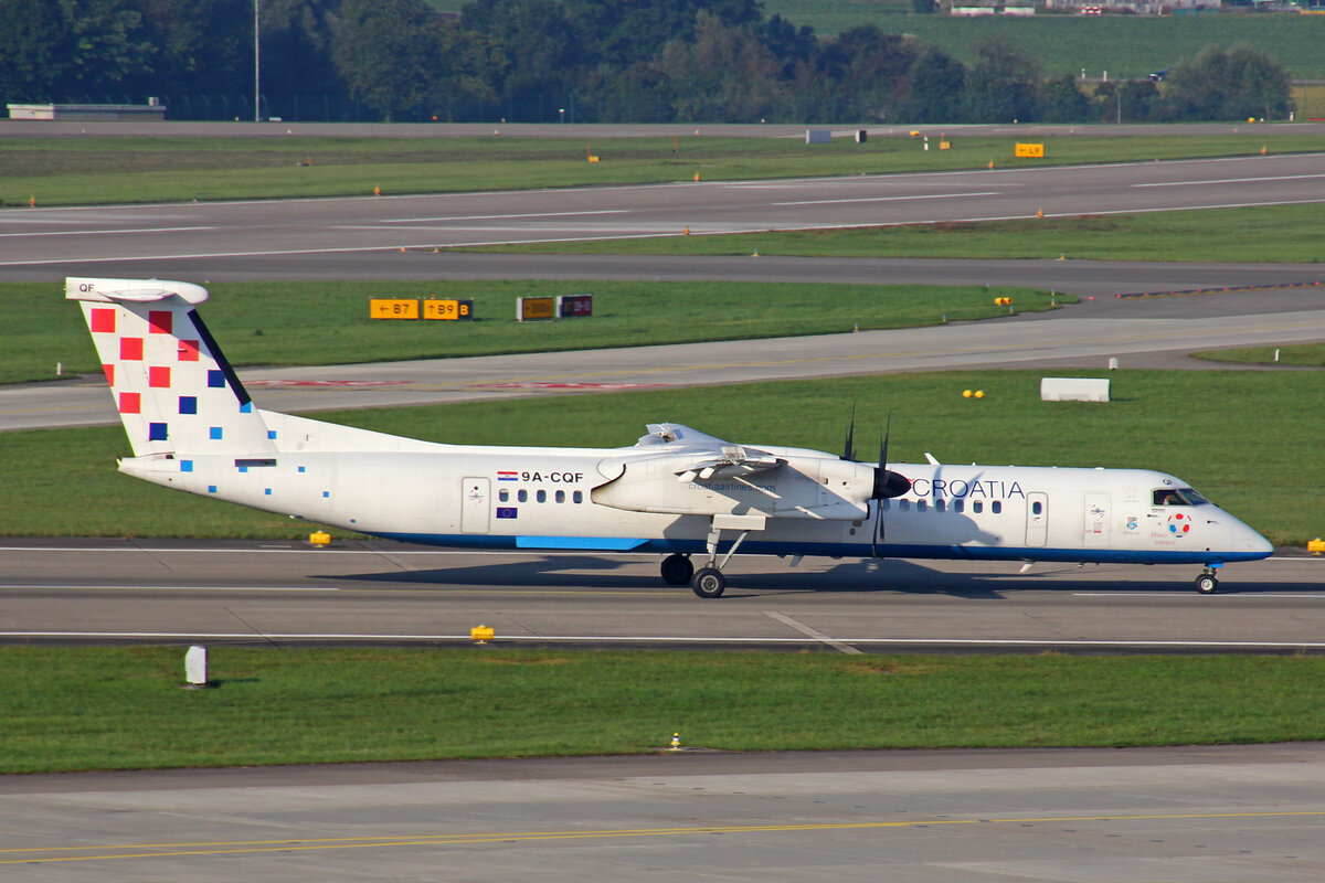 Croatia Airlines, 9A-CQF, Bombardier DHC-8 402, msn: 4301, "Primorje", "Bravo Vatreni"Fussball Sticker, 04.September 2021, ZRH Zürich, Switzerland.