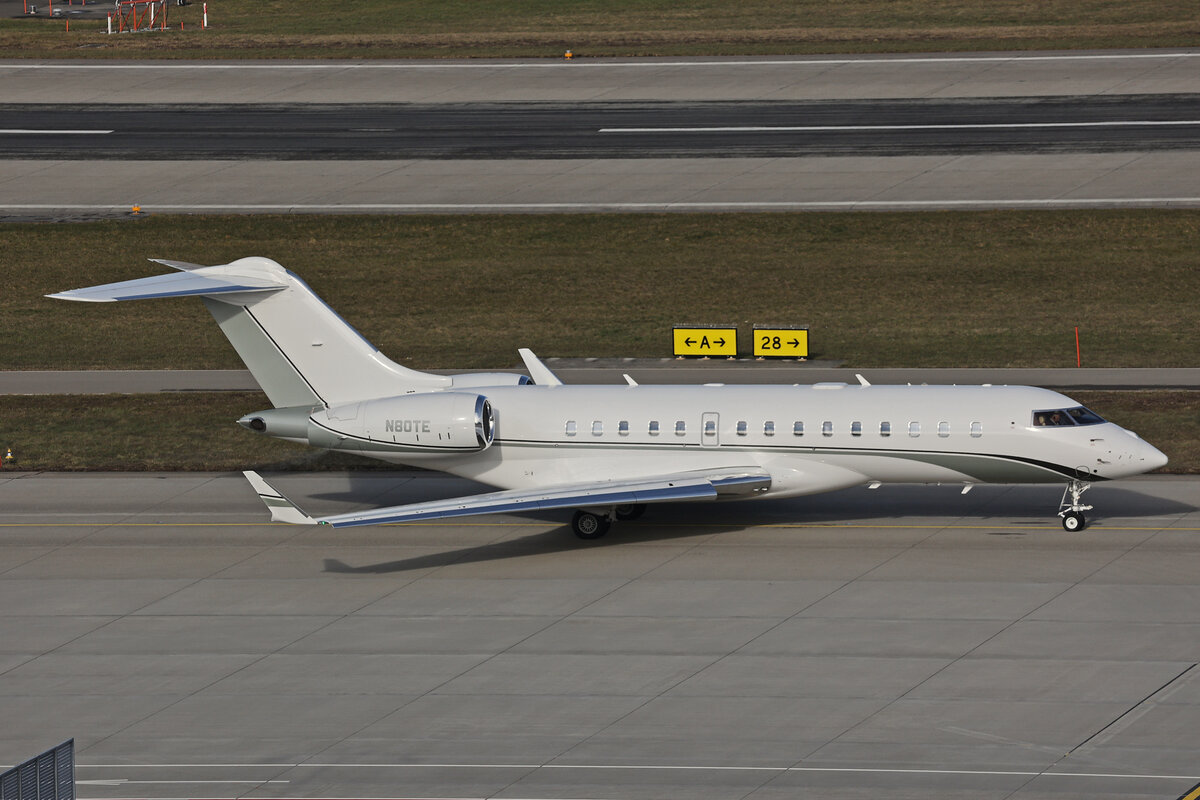 Solarius Aviation, N80TE, Bombardier Global 6500, msn: 60006, 24.Januar 2025, ZRH Zürich, Switzerland.