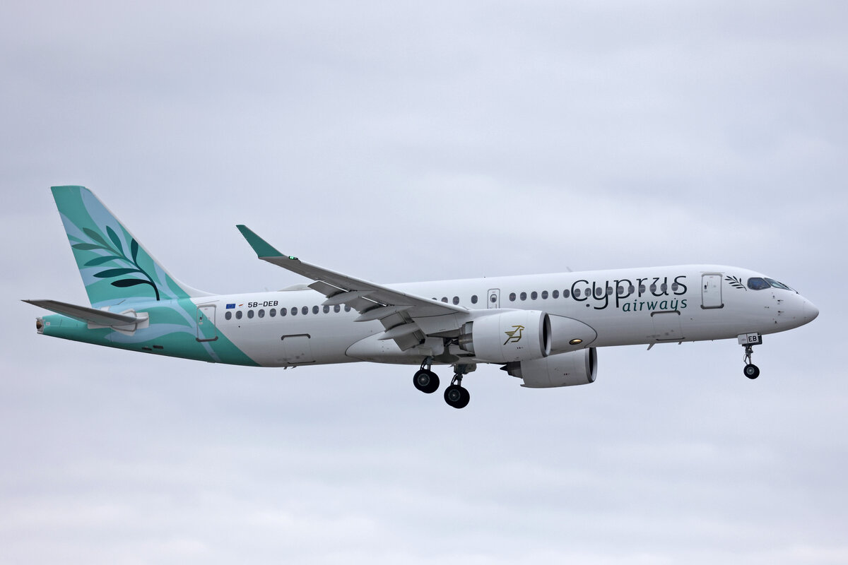 Cyprus Airways, 5B-DEB, Airbus A220-371, msn: 55208, 15.Januar 2024, ZRH Zürich, Switzerland.