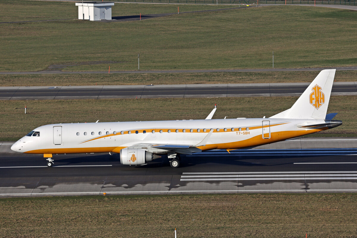 Falcon Aviation Service, T7-SBH, Embraer Lineage 1000, msn: 19000225, 16.Januar 2024, ZRH Zürich, Switzerland.