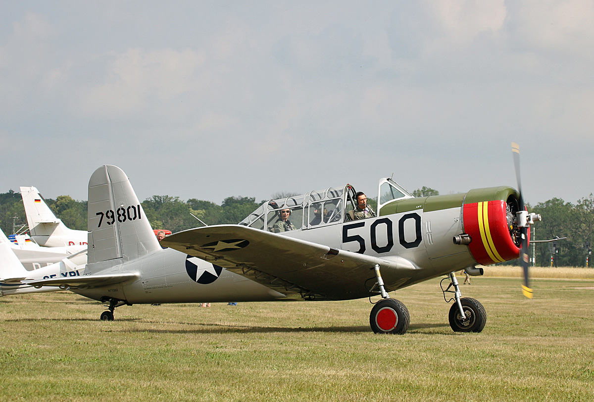 Vultee BT-13B Valiant N71502 auf dem Flughafen Leipzig-Altenburg (AOC-EDAC) am 05.09.15