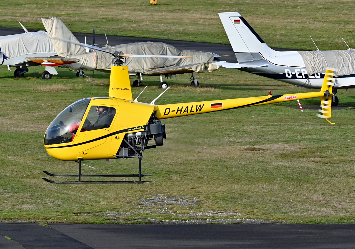 R 22 Beta II D-HALW der Air Lloyd hovert in EDKB - 10.01.2023