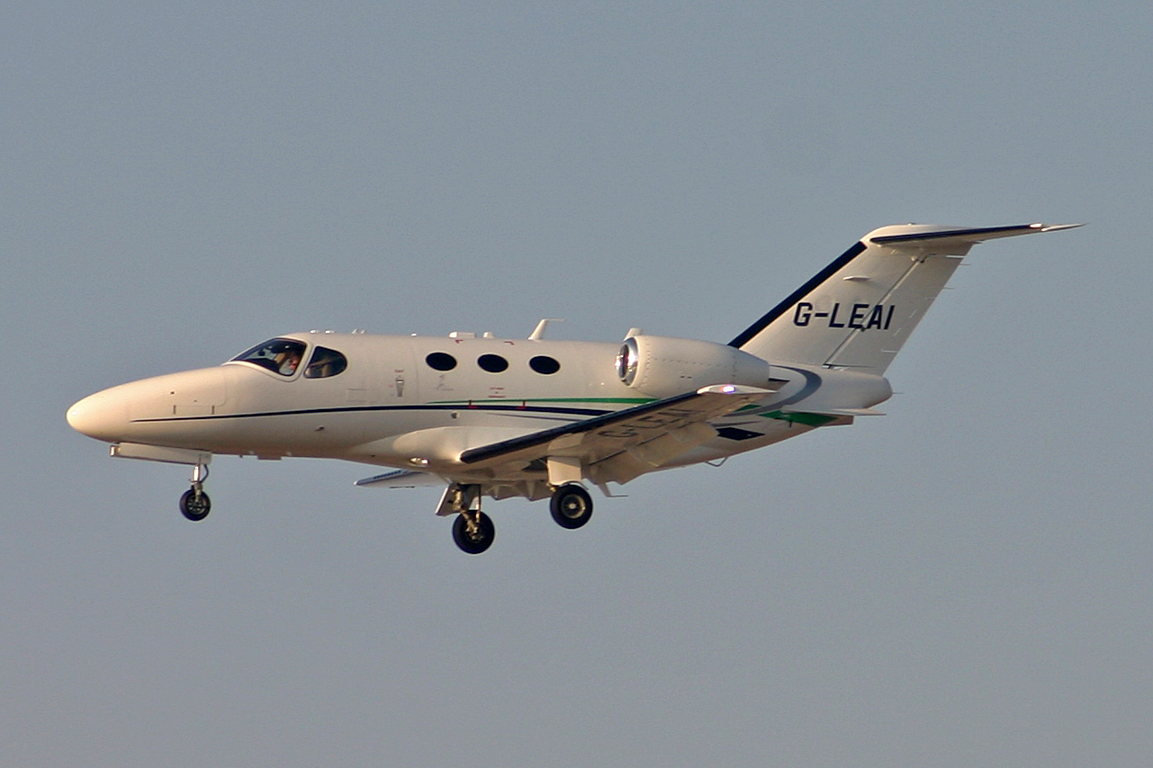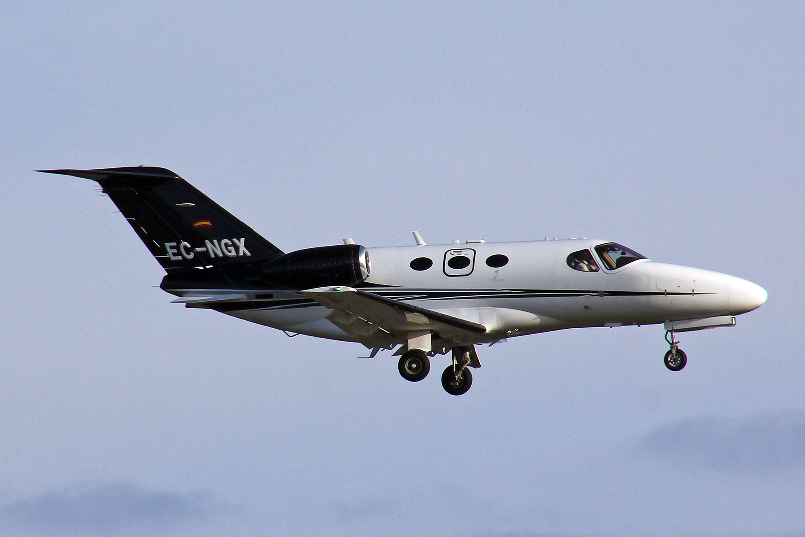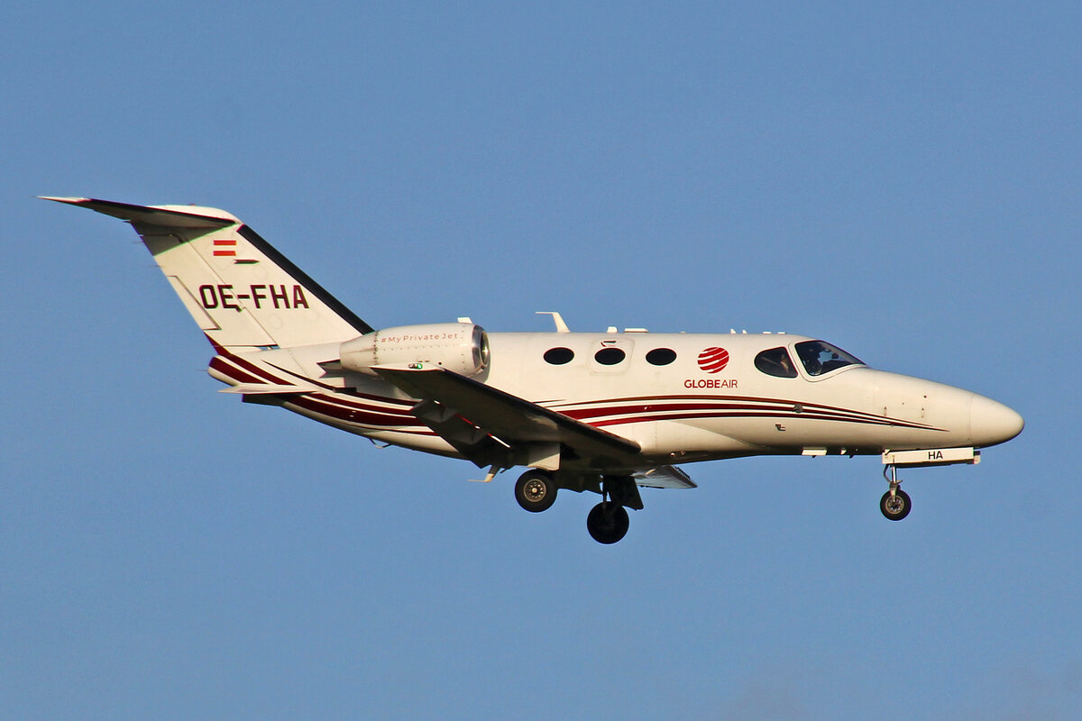 Globe Air OE-FZA Cessna Citation 510 Mustang at Antwerp Airport.