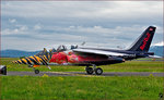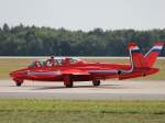 Saab 105OE (-) des österr. Bundesheer und eine private Fouga CM-170 Magister (D-IFCC) nach ihrer gemeinsamen Flugvorführung am 3.9.2016 anlässlich der Airpower16 in Zeltweg.