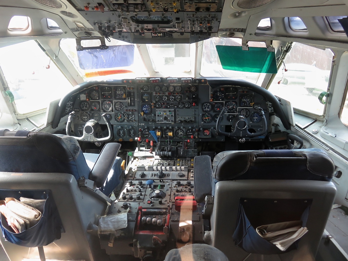 Blick ins Cockpit der BAC Vickers VC 10 (1962) der United Arab Emirates in der Flugausstellung Hermeskeil, 23.8.18