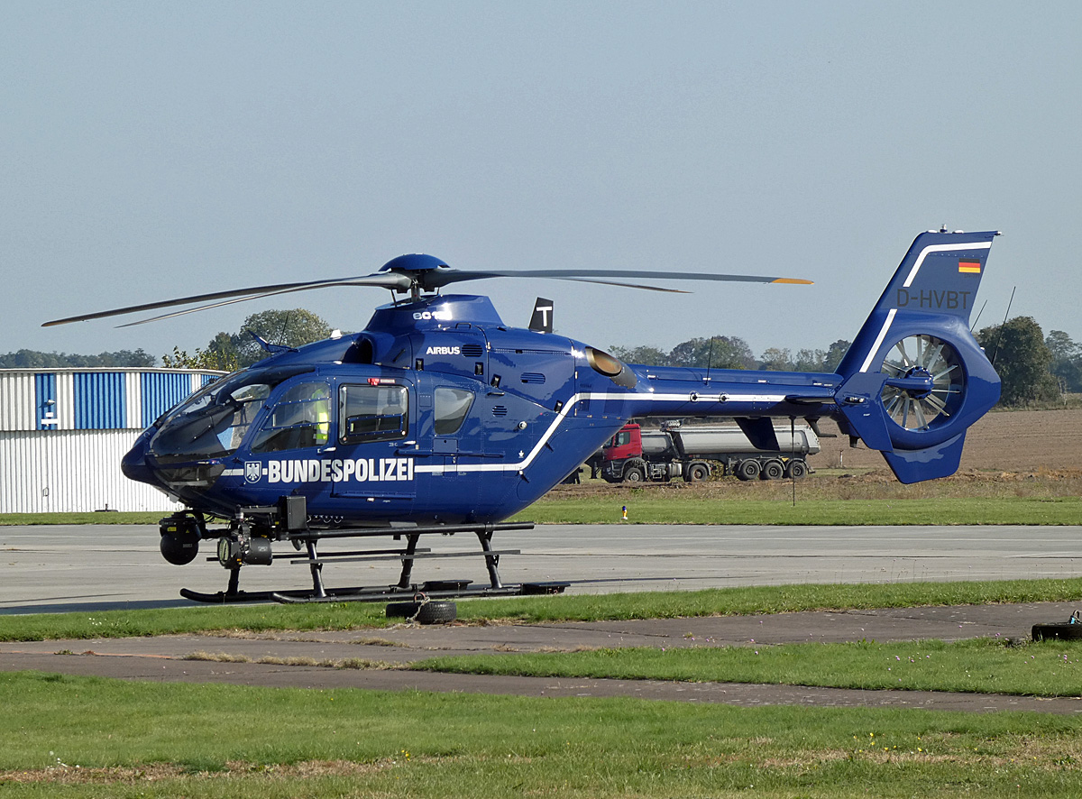 Betrieb an den Zapfsäulen der Flugplatztankstelle Bonn-Hangelar. Von li. nach rechts: EC 135P-2 (ADAC), Schweizer-Hu 269 CBi und JMB VL 3 - 27.11.2015