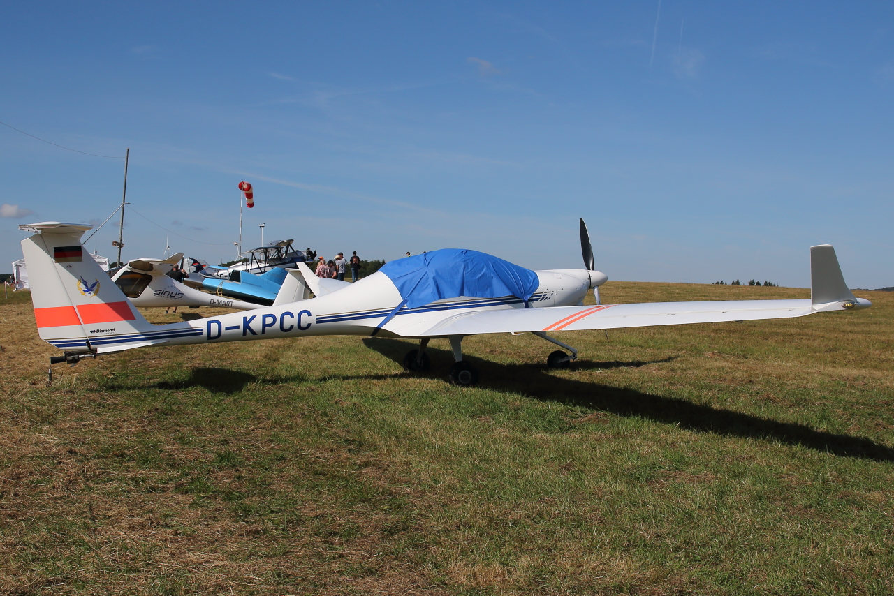 Diamond HK36R Super Dimona, D-KCKC. Vereinsflugzeug des Luftsportvereins Linkenheim-Hochstetten. Im Abflug vom Flugplatz Ailertchen (EDGA) am 05.05.2018.