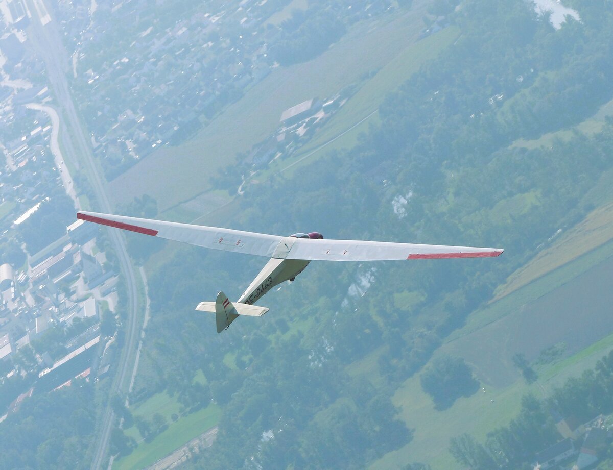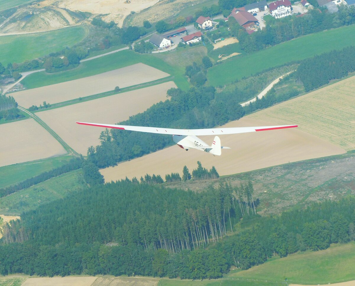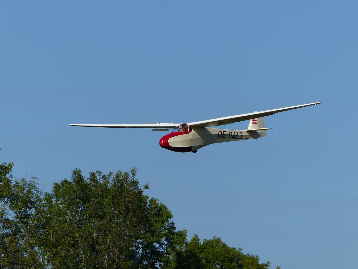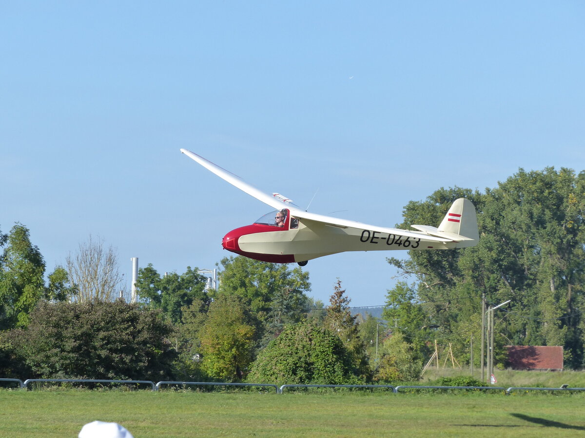 Scheibe L Spatz 55, OE-0463 vor der Landung in Moosburg auf der Kippe (EDPI) am 1.10.2023