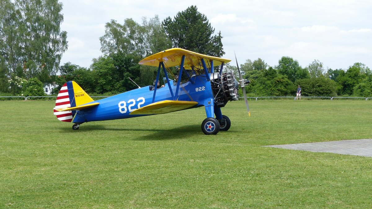 Boeing A75N1 Stearman, N351AH beim Flugplatzfest in Moosburg auf der Kippe (EDPI) am 4.6.2022