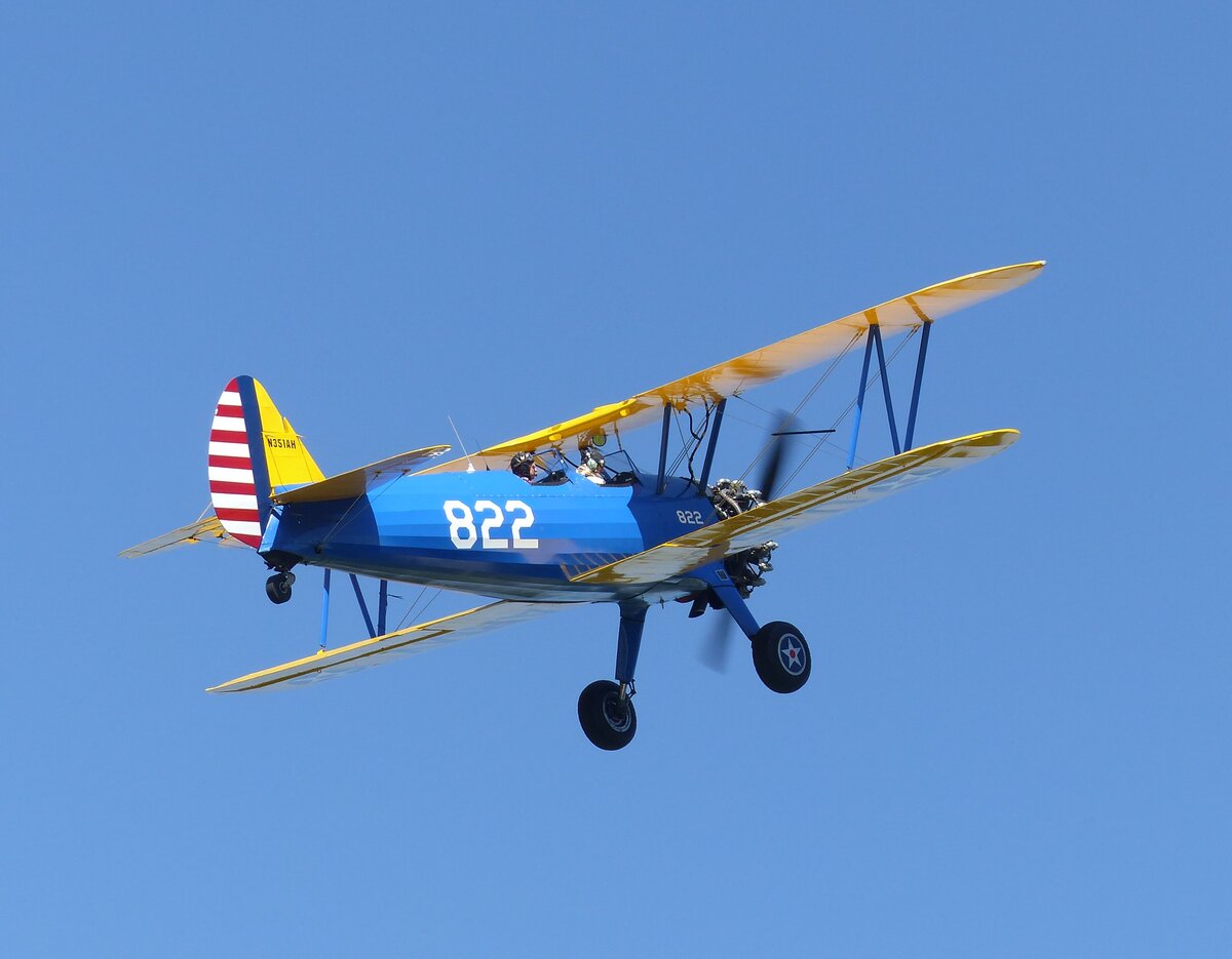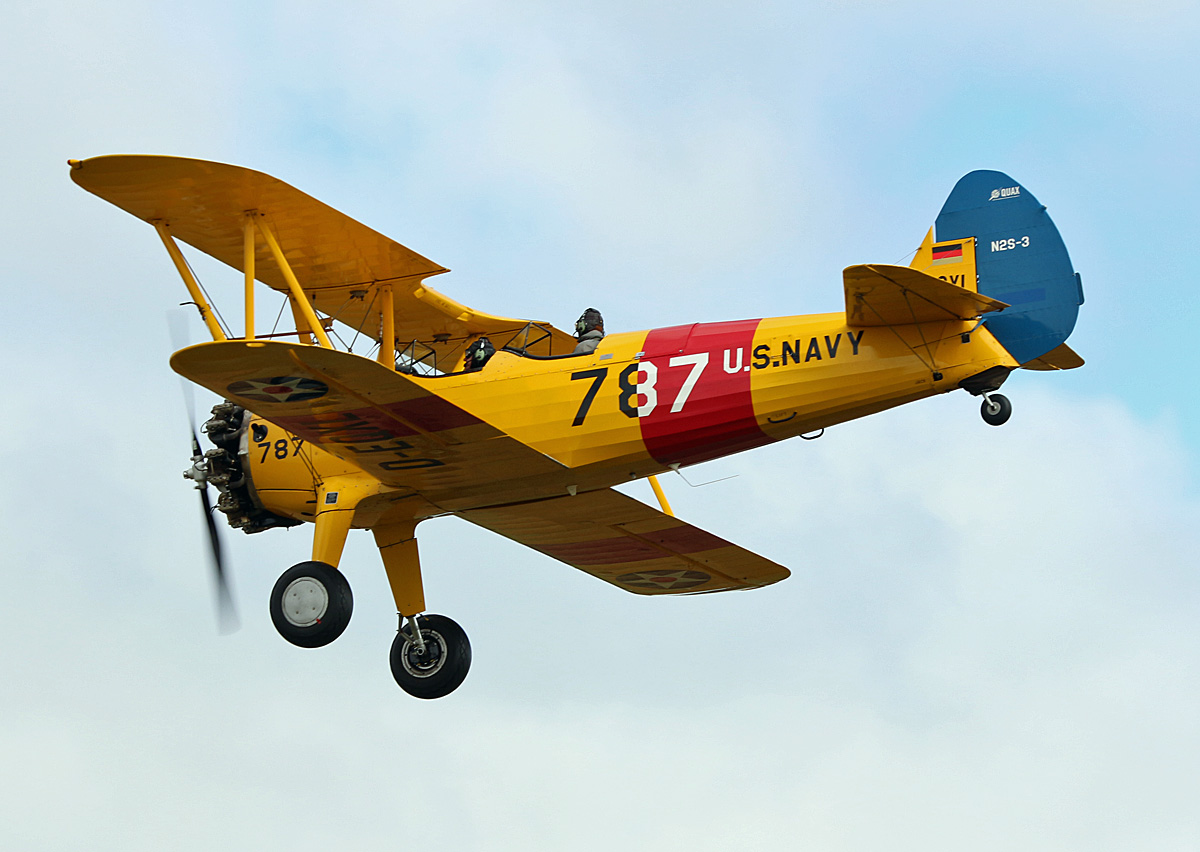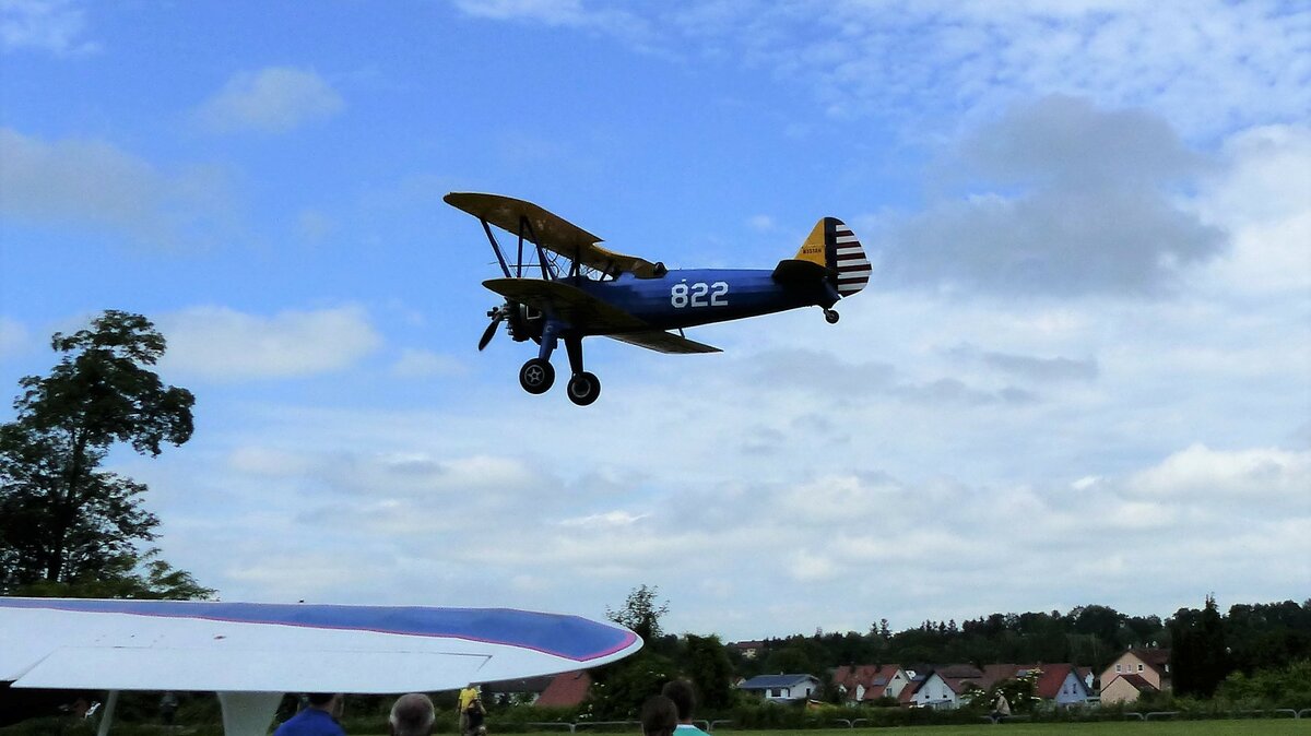 Boeing A75N1 Stearman, N351AH vor der Landung in Moosburg auf der Kippe (EDPI) am 4.6.2022