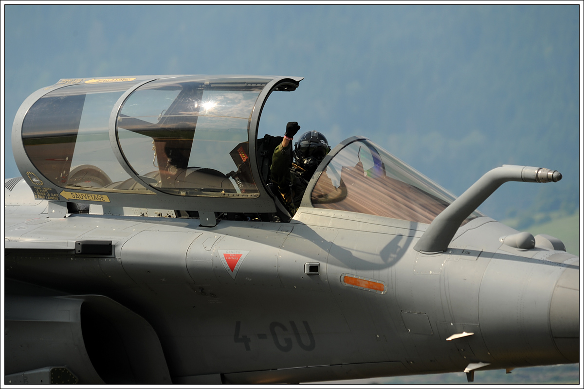 JG "Marty" Martinez von den französischen Luftstreitkräfte mit geballter Faust nach seinem Trainingsflug für die Airpower16 am 1.9.2016 in Zeltweg. Zuvor bekam seine DASSAULT RAFALE (4-GU) noch einige Streicheleinheiten, die leider auf keinem meiner Fotos so richtig erkennbar sind.