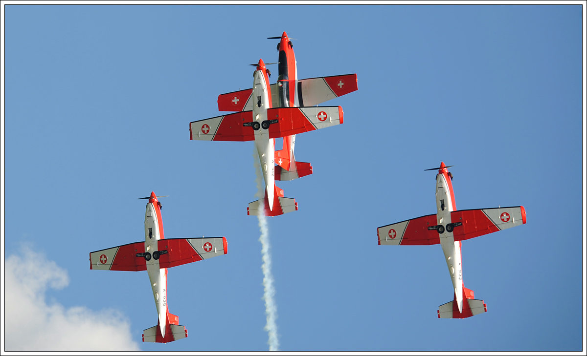 Das PC-7 TEAM der Eidgenossen, am 3.9.2016 in Zeltweg bei der Airpower16 in Zeltweg aufgenommen.