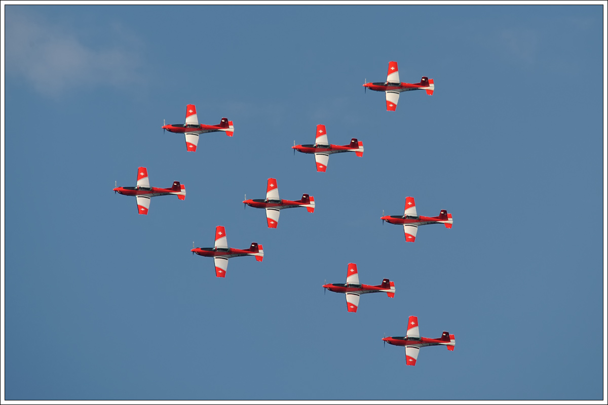 Das PC-7 TEAM der Eidgenossen beim Training für die Airpower16 am 1.9.2016 in Zeltweg.