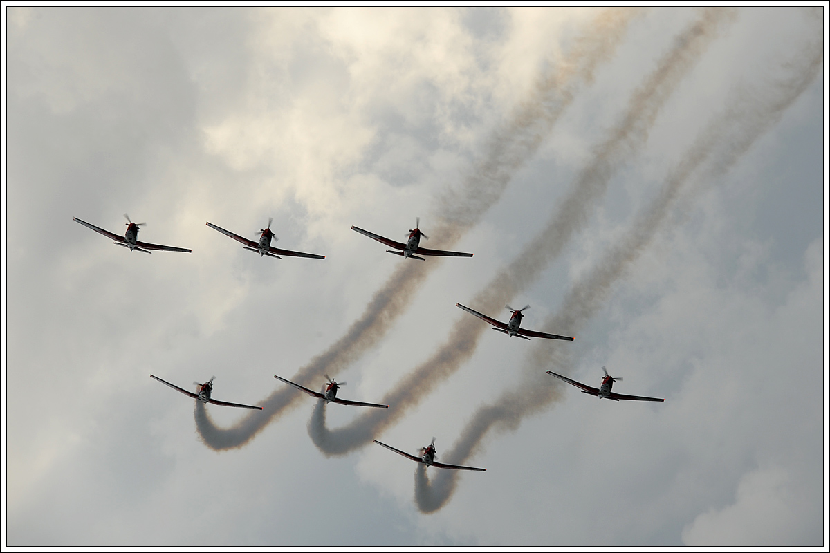 Das PC-7 TEAM der Eidgenossen beim Training für die Airpower16 am 1.9.2016 in Zeltweg.