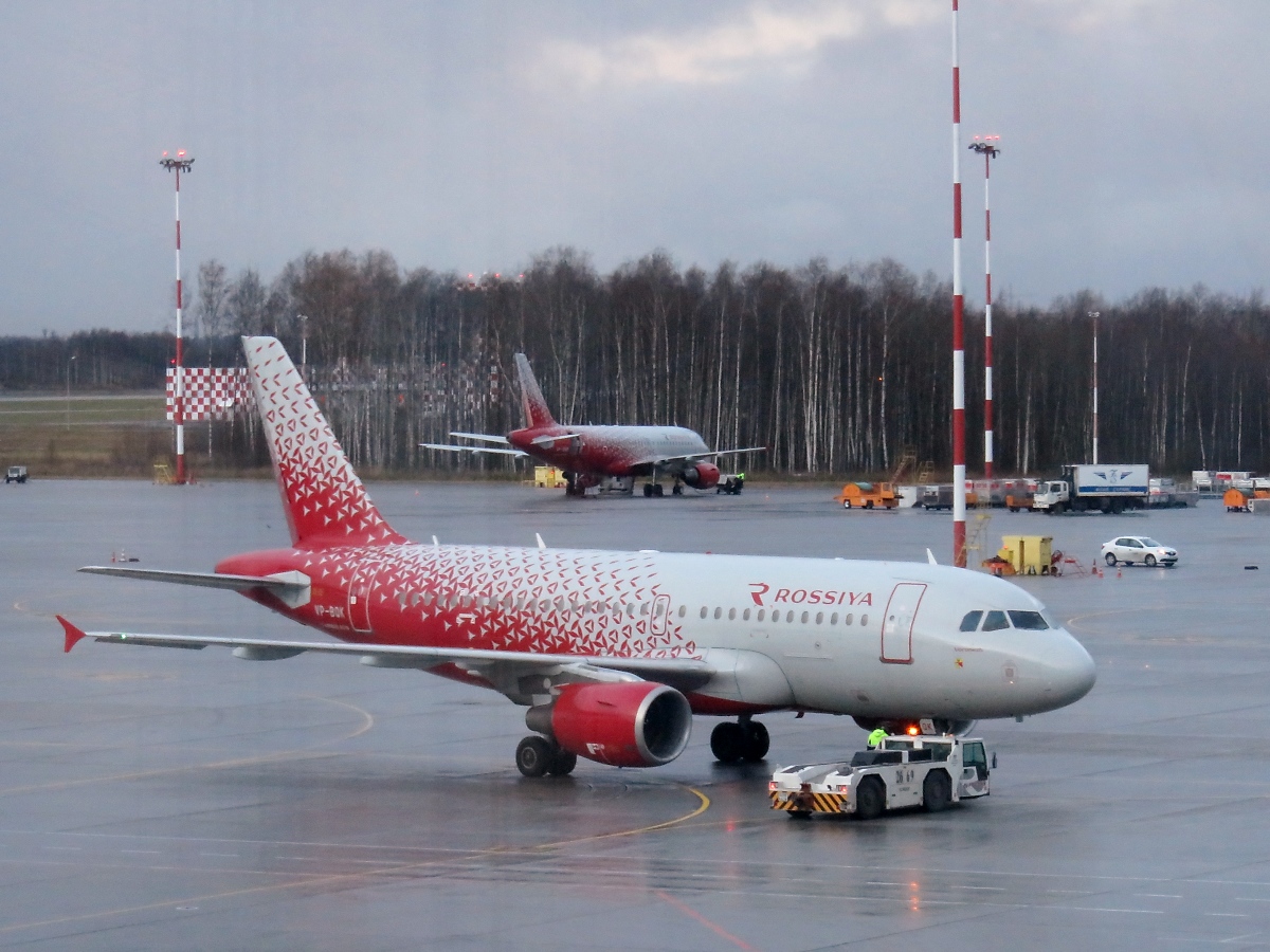 Rossiya Airlines Airbus A319-111 VP-BQK, "Воронеж" (Voronezh) während eines Wolkenbruchs in Pulkovo, 13.11.17
