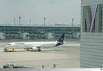 Am 11. Mai 2018 rollt der Lufthansa Airbus A319-100 D-AILU "Verden", mit Sonderbeklebung von Lu und Cosmo, auf dem Münchener Flughafen zur Startbahn.