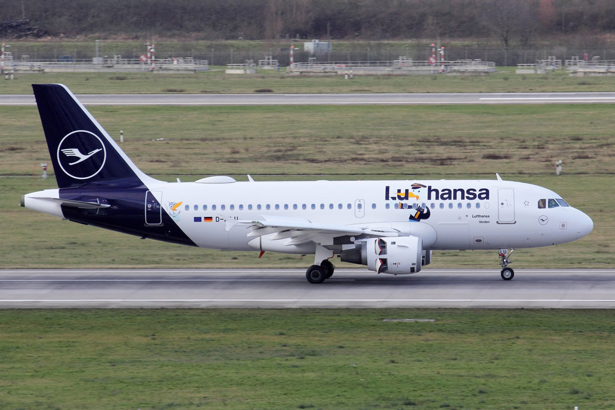 Lufthansa Airbus A319-114 D-AILU nach der Landung in Düsseldorf 19.1.2020
