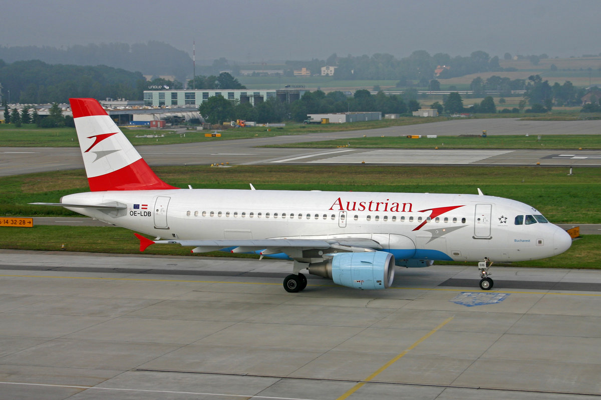 Austrian Airlines, OE-LDB, Airbus A319-112, msn: 2174, "Bucharest", 09.Juli 2005, ZRH Zürich, Switzerland.