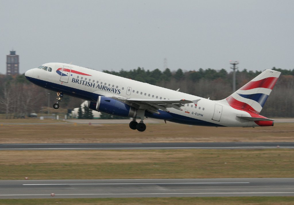 British Airways A 319-131 G-EUPM beim Start in Berlin-Tegel am 27.11.2011