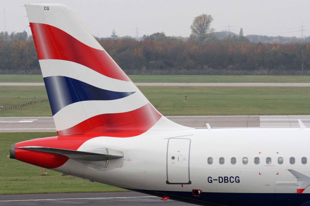 British Airways, G-DBCG (ex BMI), Airbus, A 319-100 (Seitenleitwerk/Tail), 10.11.2012, DUS-EDDL, Düsseldorf, Germany