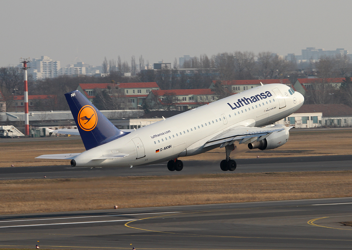 Lufthansa A 319-112 D-AKNH beim Start in Berlin-Tegel am 14.04.2013