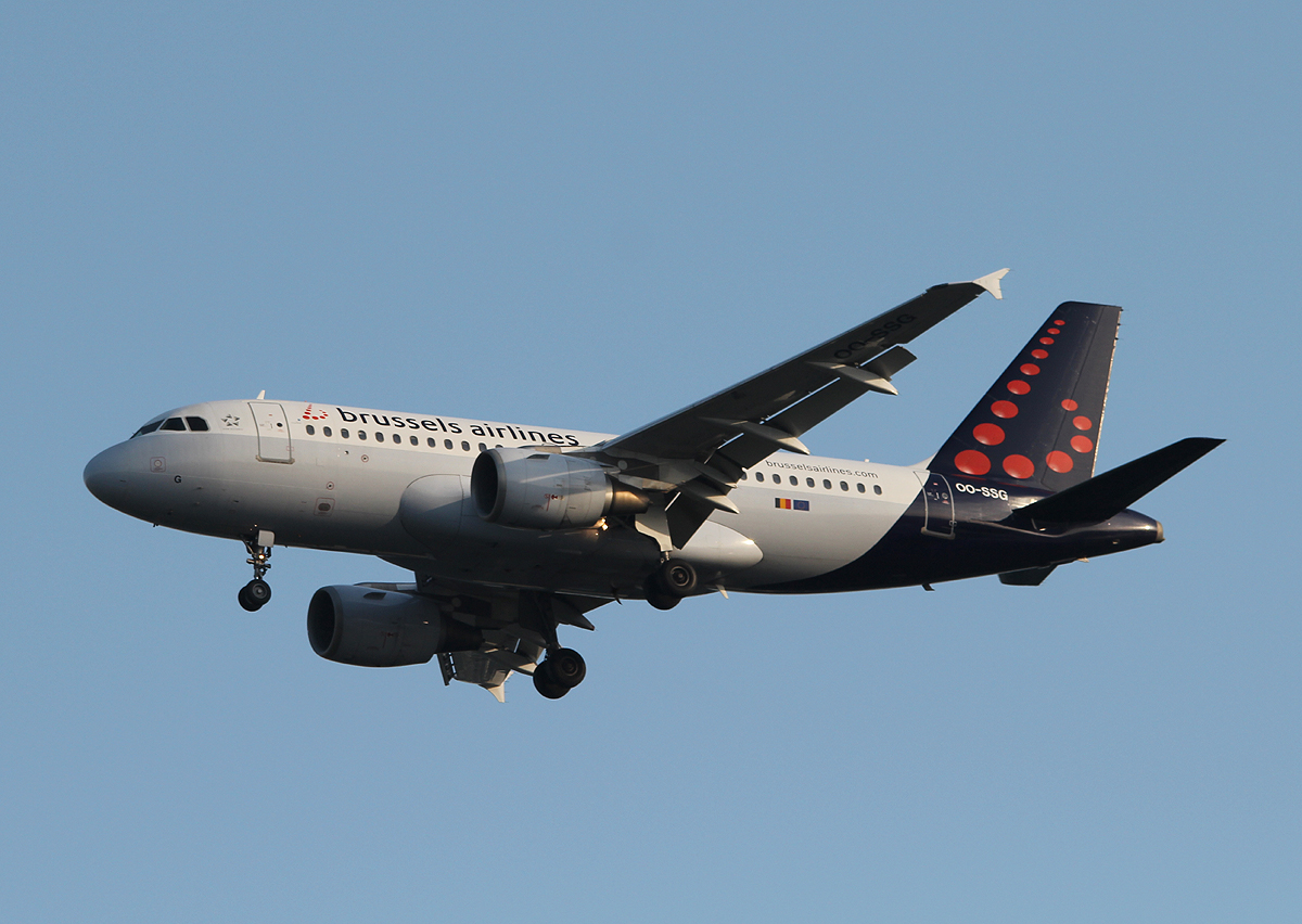 Brussels Airlines A 319-112 OO-SSG bei der Landung in Berlin-Tegel am 18.06.2013