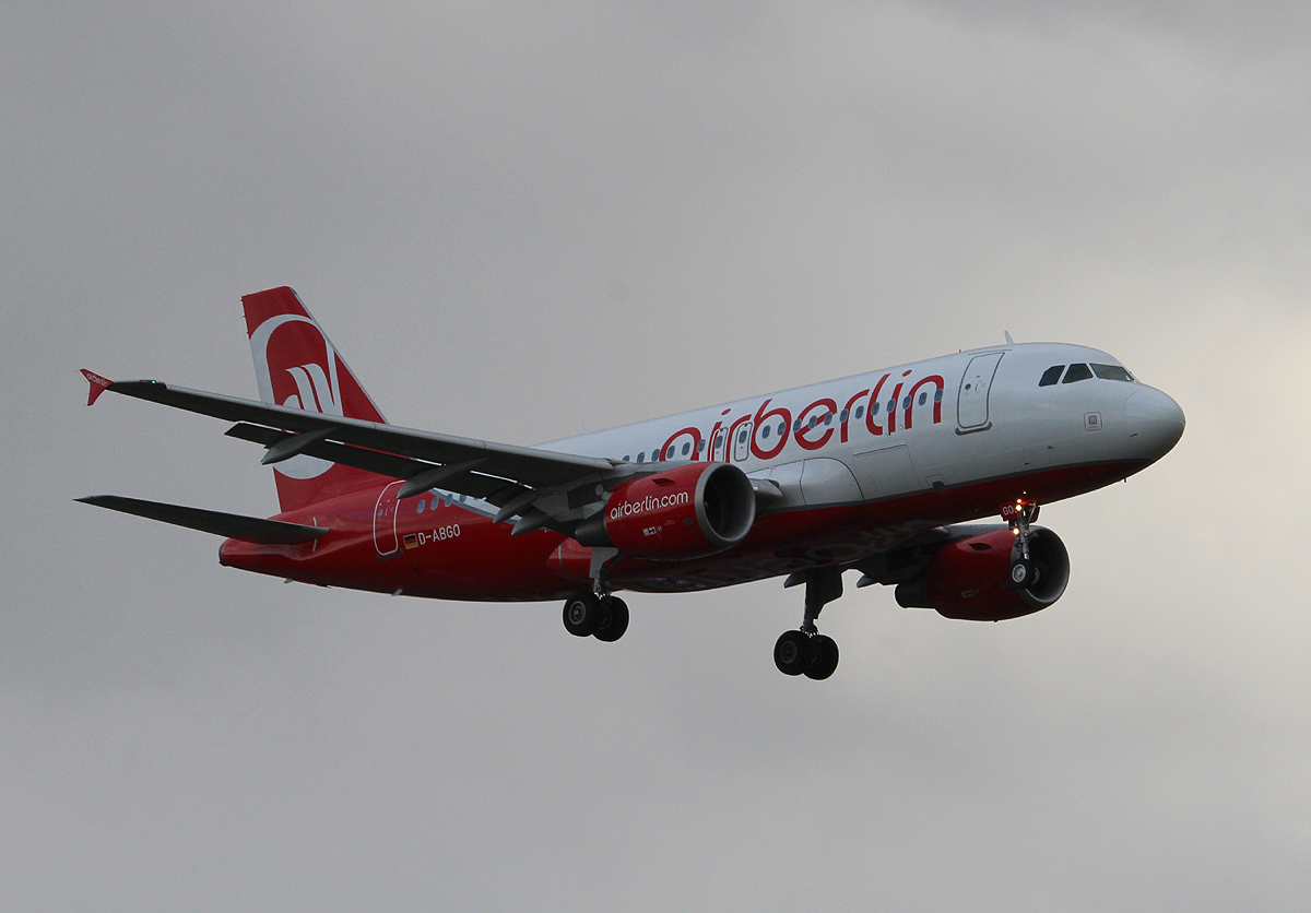 Air Berlin A 319-112 D-ABGO bei der Landung in Berlin-Tegel am 09.11.2013
