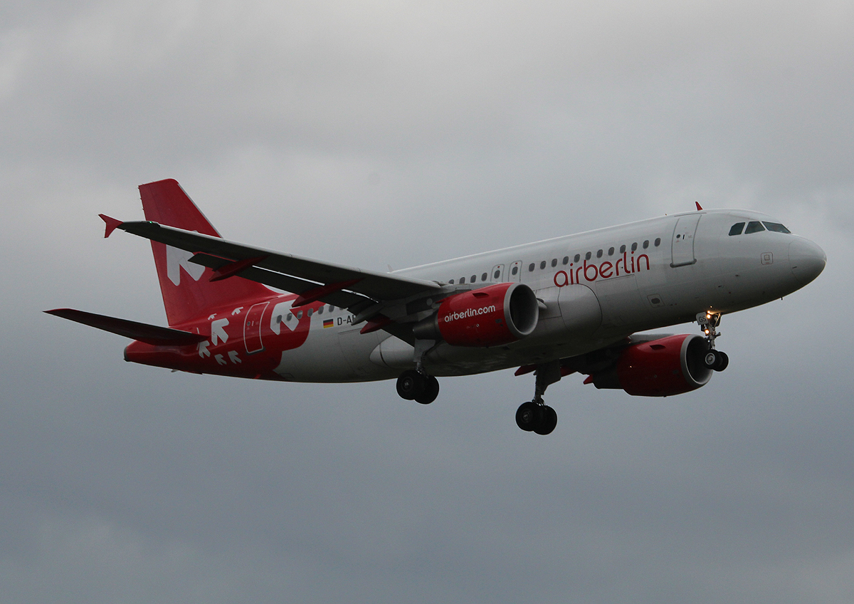 Air Berlin A 319-112 D-ABGS bei der Landung in Berlin-Tegel am 09.11.2013