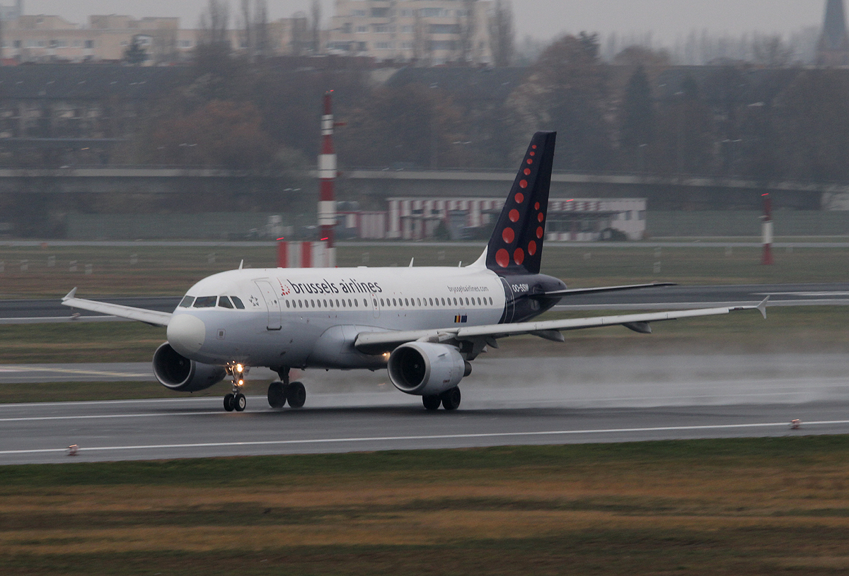 Brussels Airlines A 319-111 OO-SSW beim Start in Berlin-Tegel am 24.11.2013