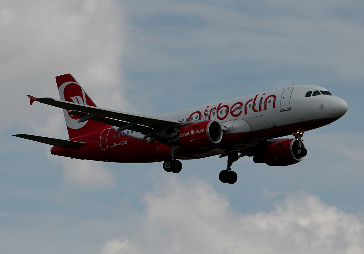 Air Berlin A 319-112 D-ABGN bei der Landung in Berlin-Tegel am 09.05.2014
