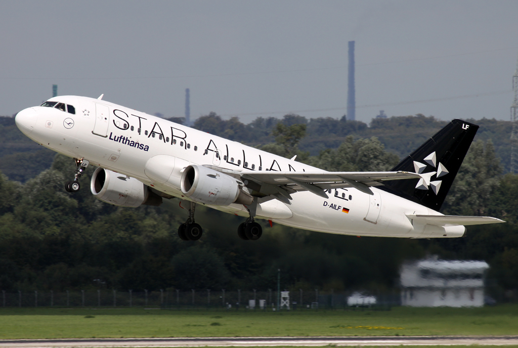 Lufthansa Star Alliance A-319 D-AILF beim Takeoff auf 23L in DUS / EDDL / Düsseldorf am 20.08.2014