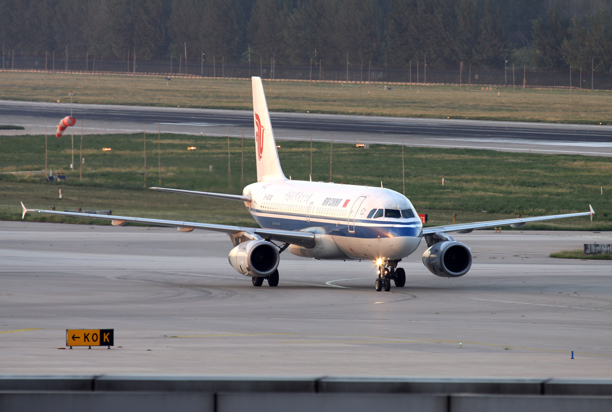 Air China A-319 B-6032 auf dem Taxiway zur 01 in PEK / ZBAA / Peking am 26.08.2014