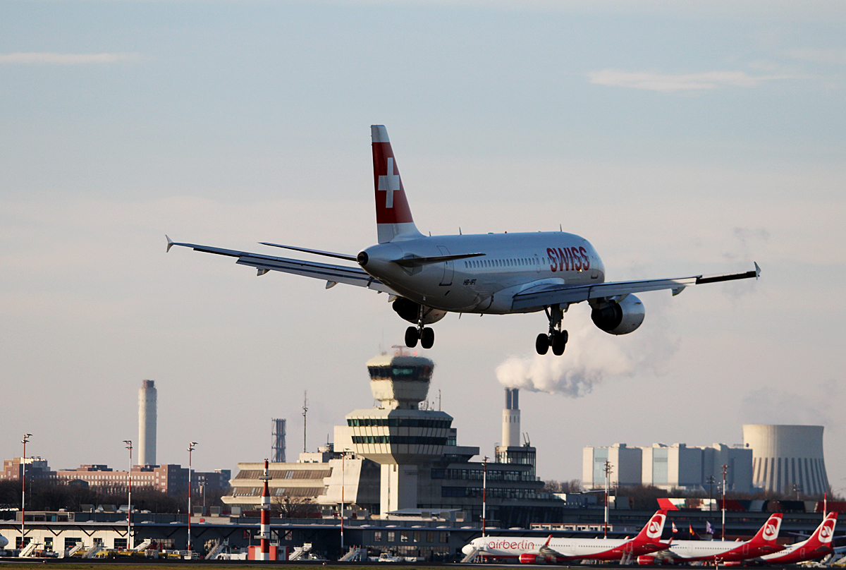 Swiss A 319-112 HB-IPT bei der Landung in Berlin-Tegel am 06.12.2015