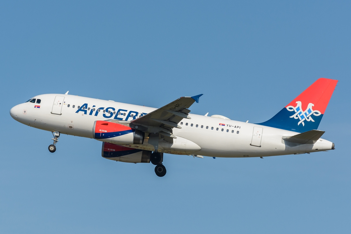 Air Serbia Airbus A319-132 YU-API am 28.08.2016 in Düsseldorf.