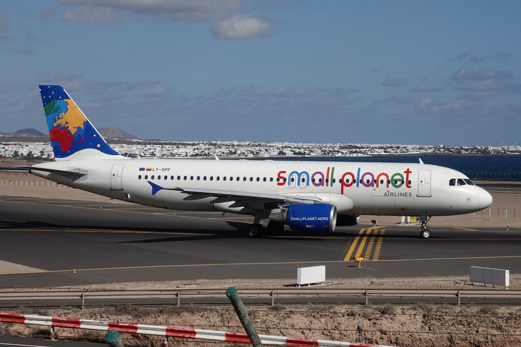 A320-214 der Small Planet Airlines Litauen, LY-SPF, in ACE am 23.12.17