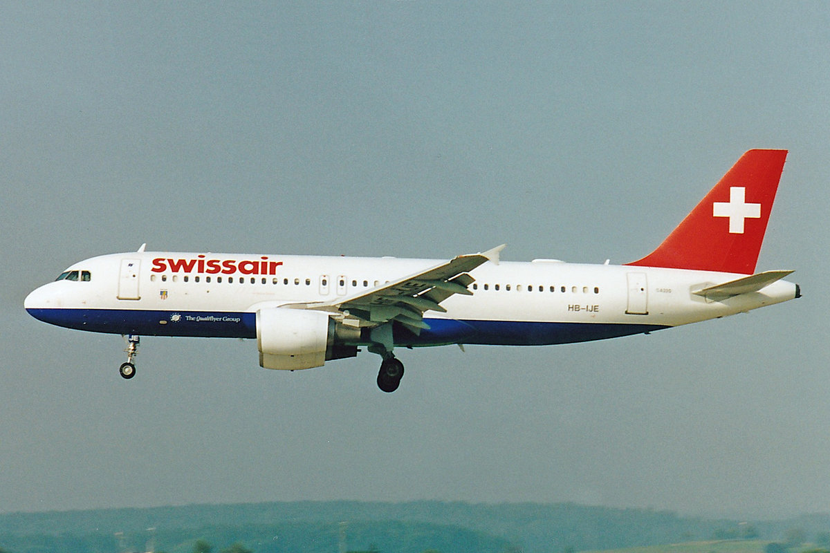 SWISSAIR, HB-IJE, Airbus A320-214, msn: 559, "Dübendorf", April 2001, ZRH Zürich, Switzerland. Scan aus der Mottenkiste.
