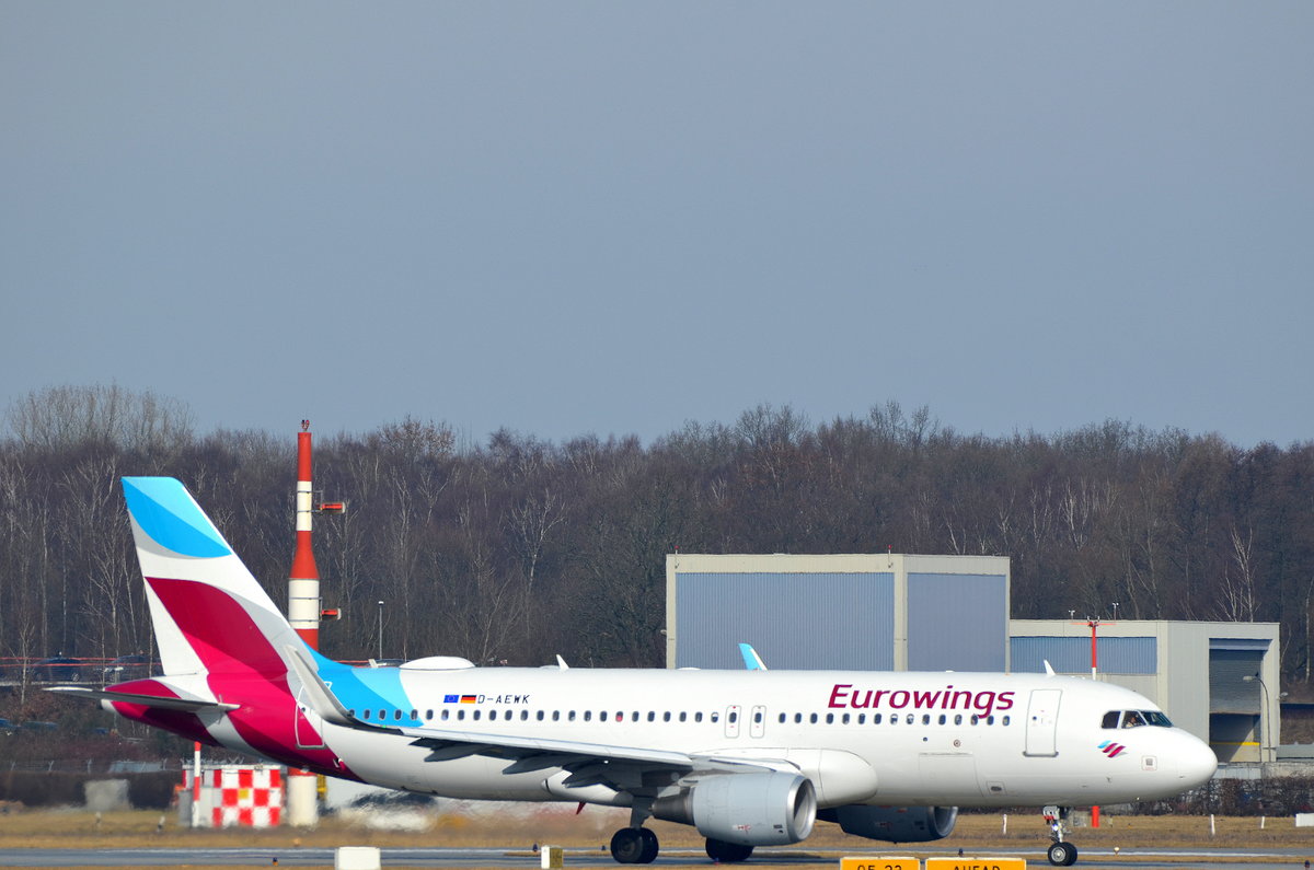 Eurowings Airbus A320 D-AEWK am 11.03.18 am Airport Hamburg Fuhlsbüttel Helmut Schmidt aufgenommen.