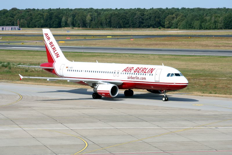 Air Berlin A 320-214 D-ABDI bei der Ankunft auf dem Flughafen Berlin-Tegel am 30.08.2009