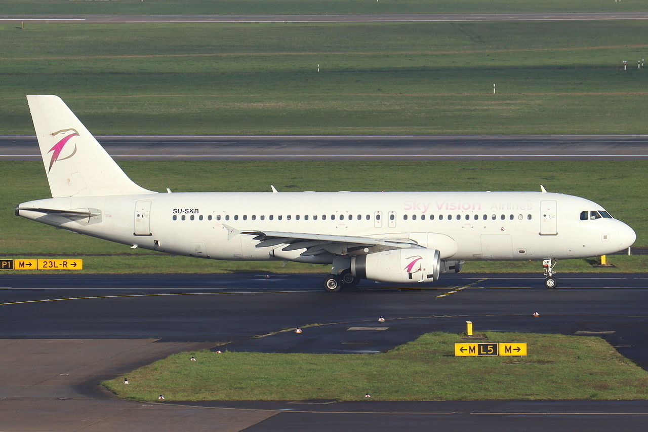 Sky Vision Airlines Airbus A320-232 SU-SKB rollt zum Start in Düsseldorf 29.3.2026