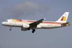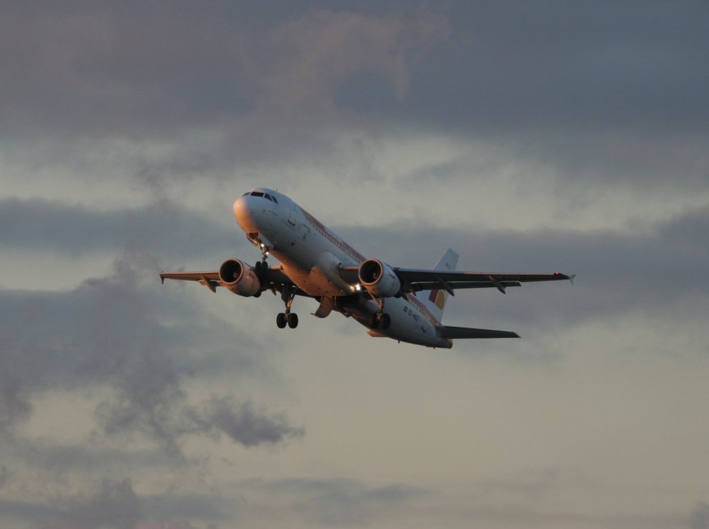 Iberia A 320-214 EC-HUJ beim Start in Berlin-Tegel am frühen Morgen des 12.02.1011