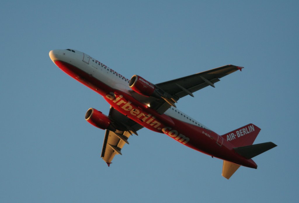 Air Berlin A 320-214 D-ALTH beim Start in Berlin-Tegel am frühen Morgen des 12.02.2011